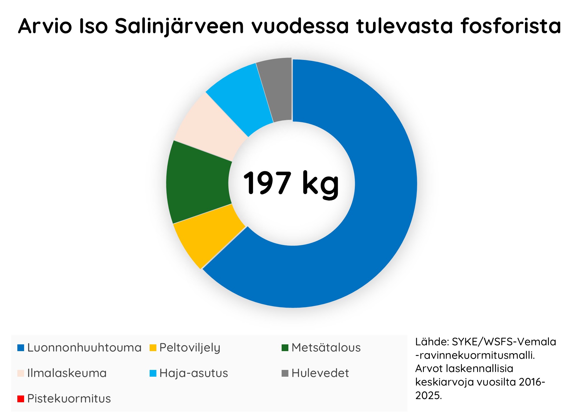 Suurin osa Iso Salinjärveen tulevasta fosforista on luonnonhuuhtoumaa.