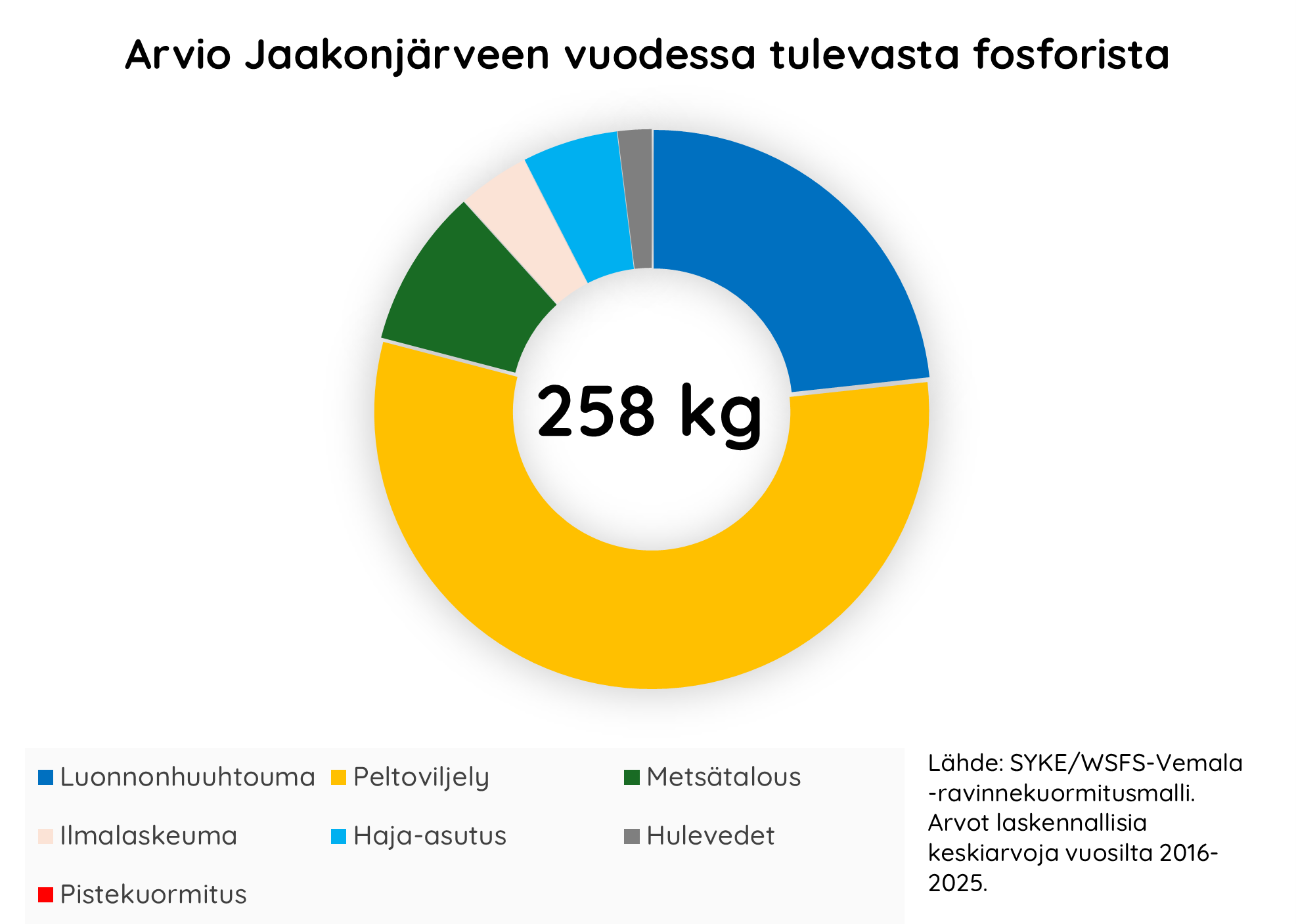 Arviolta n. puolet Jaakonjärveen tulevasta fosforista tulee peltoviljelystä.