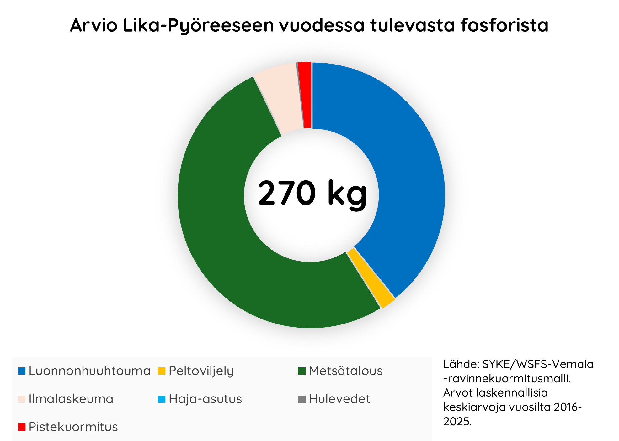 Lika-Pyöree on matala järvi, jonka vedenpintaa on aikanaan laskettu noin 0,5 metriä. Arviolta noin puolet Lika-Pyöreeseen tulevasta fosforista tulee metsätaloudesta ja noin 40 % luonnonhuuhtoumana. Järven valuma-alueen koillisosassa sijaitsee Hirsisuon turvetuotantoalue (pistekuormitus).
