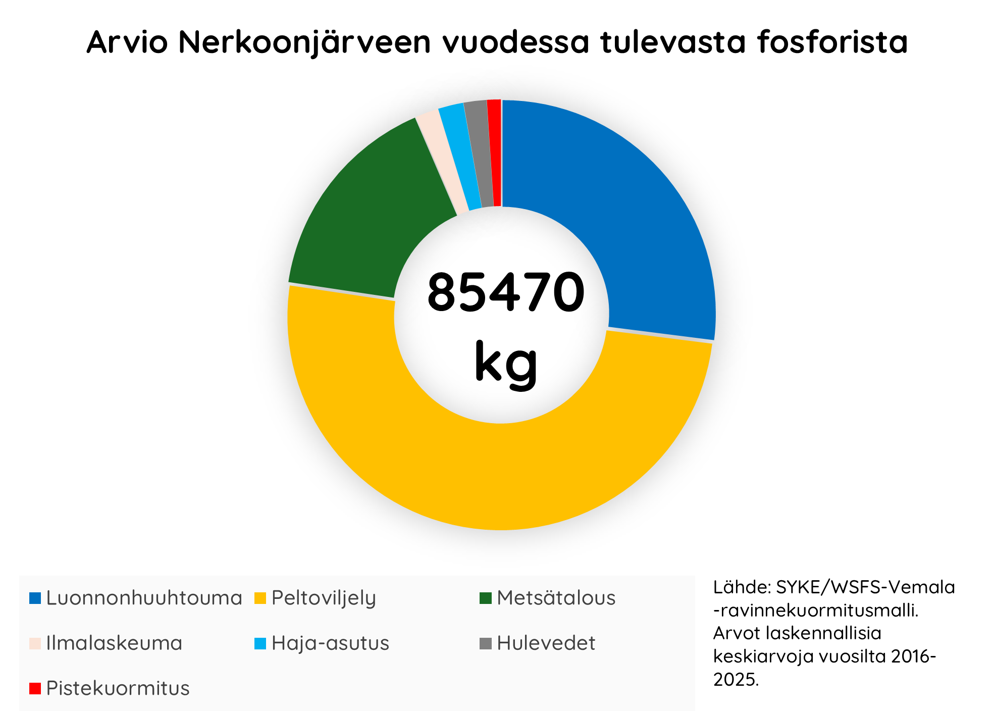 Nerkoonjärvi on lyhytviipymäinen järvi, jolla on laaja yläpuolinen valuma-alue. Tästä syystä järven vedenlaatu ja ekologinen tila on voimakkaasti riippuvainen yläpuolisen vesistöreitin vedenlaadusta. Nerkoonjärven merkittävimpiä kuormitustekijöitä ovat koko sen laajan valuma-alueen osalta maa- ja metsätalouden sekä asutuksen hajakuormitus. Pohjois-Savon vesienhoidon toimenpideohjelmassa (2022-2027) esitetty ulkoisen fosforikuormituksen vähentämisen tarve on 13 %.