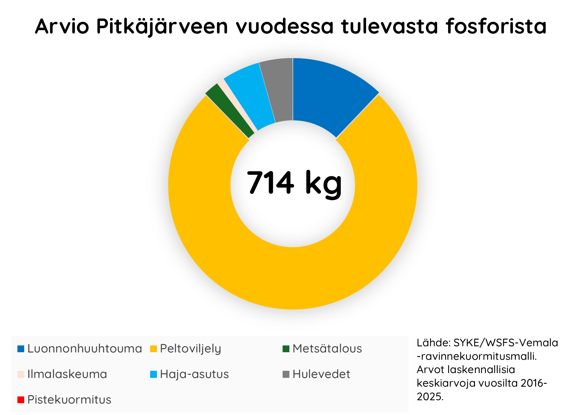 Pitkäjärveen kohdistuvan ulkoisen fosforikuormituksen osuus luonnonhuuhtoumaan verrattuna on erittäin merkittävä; 5,59-kertainen. Suurin osa järveen tulevasta fosforista on peräisin peltoviljelystä.