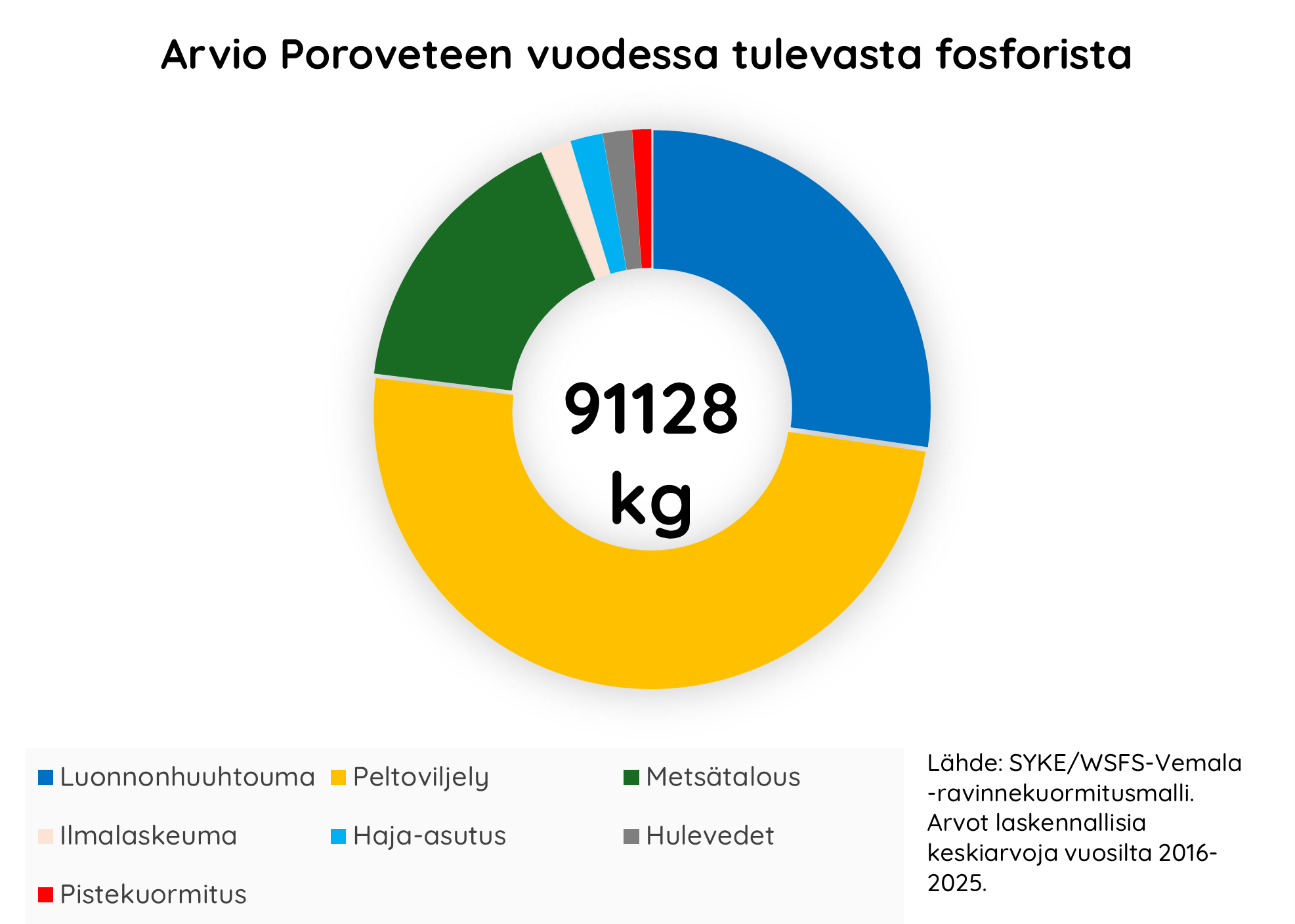 Pohjois-Savon vesienhoidon toimenpideohjelmassa (2022-2027) Poroveden ulkoisen fosforikuormituksen vähennystarpeeksi on arvioitu 13 %.