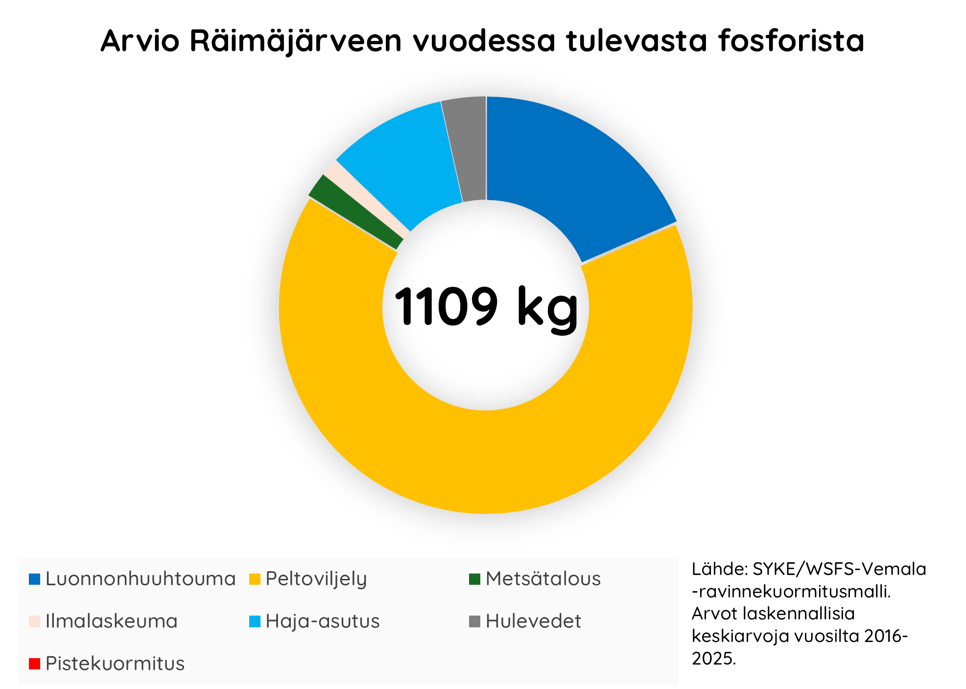 Räimäjärveen tulevasta fosforista noin 65 % on peräisin peltoviljelystä. Pohjois-Savon vesienhoidon toimenpideohjelmassa (2022-2027) Räimäjärvi on tunnistettu erityisesti maatalouskuormitteiseksi järveksi, ja ulkoisen fosforikuormituksen vähentämistarpeeksi on esitetty 11 %.