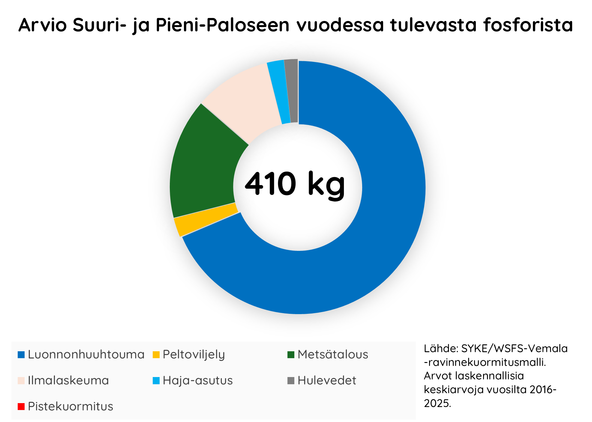Suuri- ja Pieni-Paloseen tulevasta fosforista suurin osa on luonnonhuuhtoumaa. Ihmisperäisestä toiminnasta merkittävin Suuri- ja Pieni-Palosen fosforikuormittaja on metsätalous.