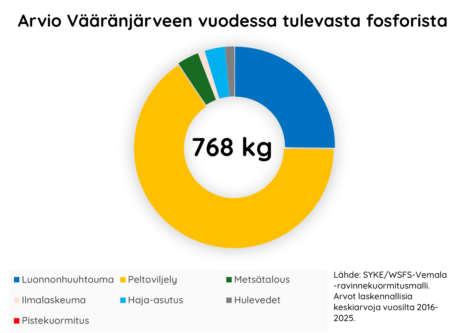 Valtaosa järveen tulevasta fosforikuormituksesta on peräisin peltoviljelystä. Pohjois-Savon vesienhoidon toimenpideohjelmassa (2022-2027) esitetty ulkoisen fosforikuormituksen vähentämisen tarve on 53 %.