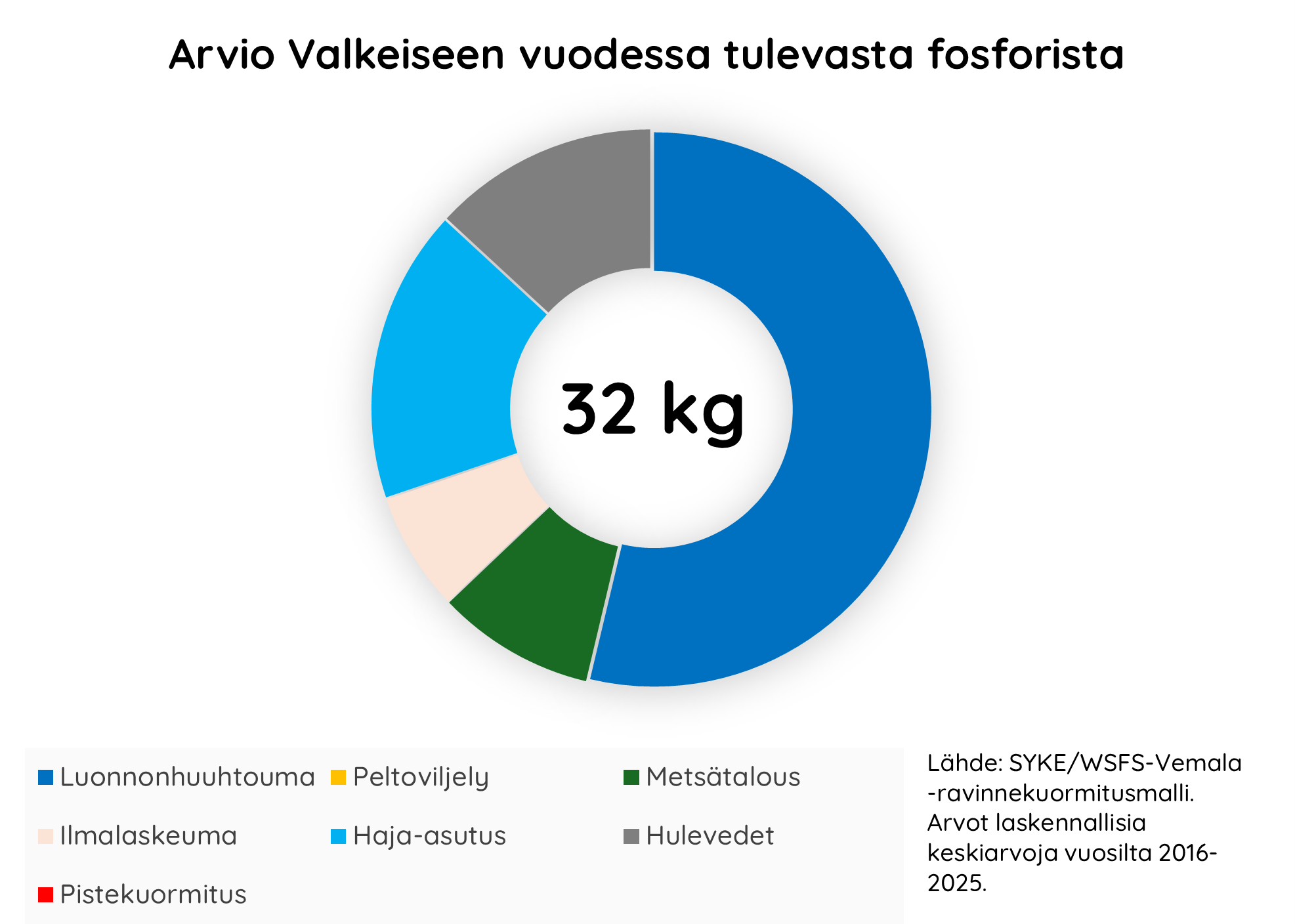Pienen valuma-alueen omaavaan järveen tulee valuma-alueelta vain vähän ravinteita. Pääosa järveen tulevasta fosforista tulee luonnonhuuhtouman kautta. Ihmisperäisestä fosforikuormituksesta suurimmat osuudet ovat haja-asutuksella ja hulevesillä.