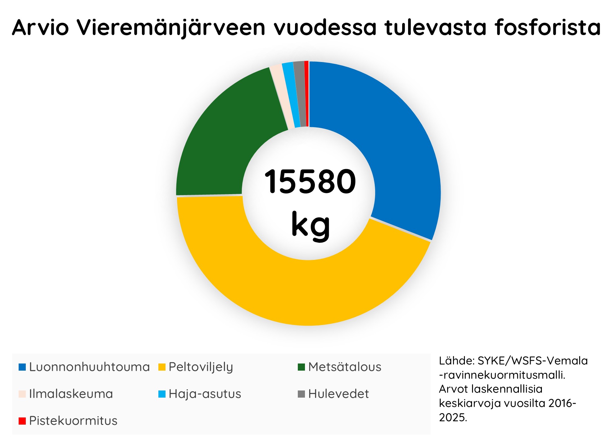 Pääosa lyhytviipymäiseen Vieremänjärveen tulevasta fosforista tulee ihmisperäisen toiminnan kautta, kuten peltoviljelystä ja metsätaloudesta.