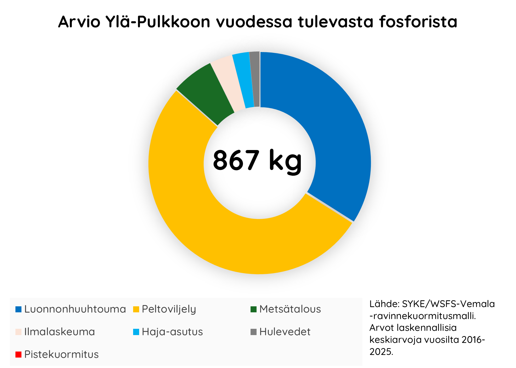 Suurin osa Ylä-Pulkkoon tulevasta fosforista on peräisin ihmisperäisestä toiminnasta. Maatalouden osuus järveen tulevasta fosforista on yli 50 %. Pohjois-Savon vesienhoidon toimenpideohjelmassa (2022-2027) esitetty ulkoisen fosforikuormituksen vähentämisen tarve on 41 %.